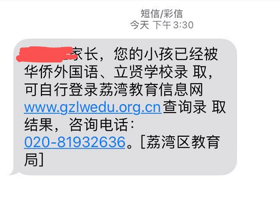 荔湾区民办小学电脑派位结果查询链接,扫描二维码后输入手机号可查。