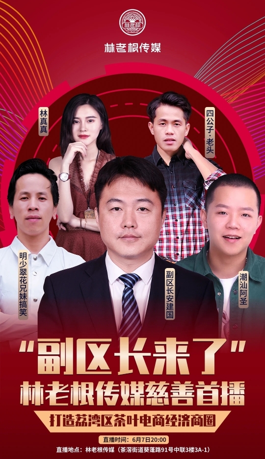 而荔湾芳村茶叶批发市场园区是全国最大的茶叶市场,有着“中国茶城看广东、广东茶城看芳村”之说。此次直播,茶叶批发市场安排了林老根传媒专场和宜品购直播专场两个专场。其中,广州林老根茶叶发展有限公司以“林老根”为主打品牌,主要从事高端普洱茶生产及品牌运作,其专场将连麦茶叶产区分会场,直播制茶工艺,介绍林老根、金典、朝颜、紫泥宝、茗选、茶鼎房等品牌,推出茶化石、真珠小青柑、乌龙教授铁观音、白牡丹白茶、朝颜小青柑等7款好茶。宜品购直播专场则邀请知名音乐人沈志仲等4名抖音达人,组织17个茶叶商户,3天内全天候轮播。
