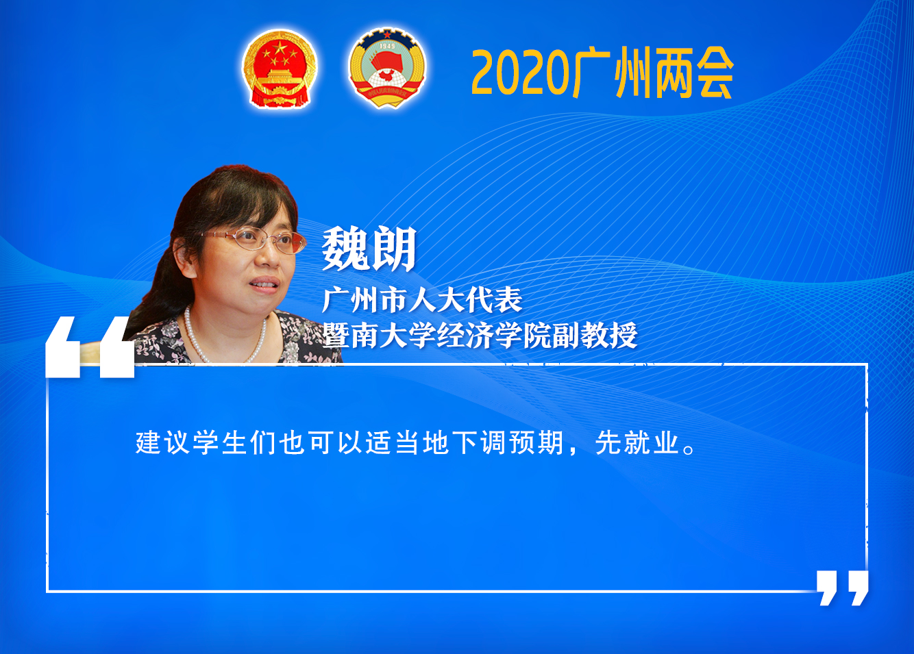 魏朗:大学生的就业问题在广州比较显著。因为广州的高校特别多。这时候,政府工作报告提出各级事业单位和市属国企扩大高校毕业生招聘规模,对我们高校的学生来说,无疑是一个很好的消息。据我了解,广州各高校的就业情况各有差异,我们暨南大学的校友发挥了他们的资源优势。我认为,毕业生们还是要居安思危,其实有时候并非找不到工作,而是预期过高,达不到希望就变成主动失业了。所以,我建议学生们也可以适当地下调预期,先就业。