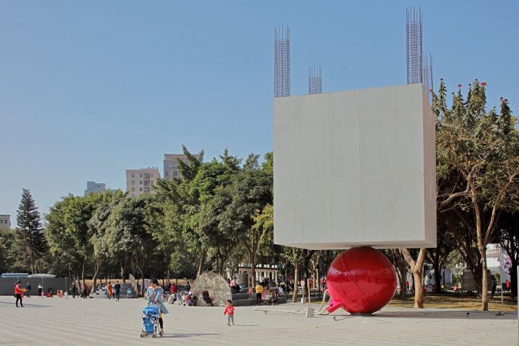 △曾经的杂草丛生的空地改造后成为附近居民的休闲去处,图为艺术家黄永砅的遗作《/&r——临时建筑计划》。