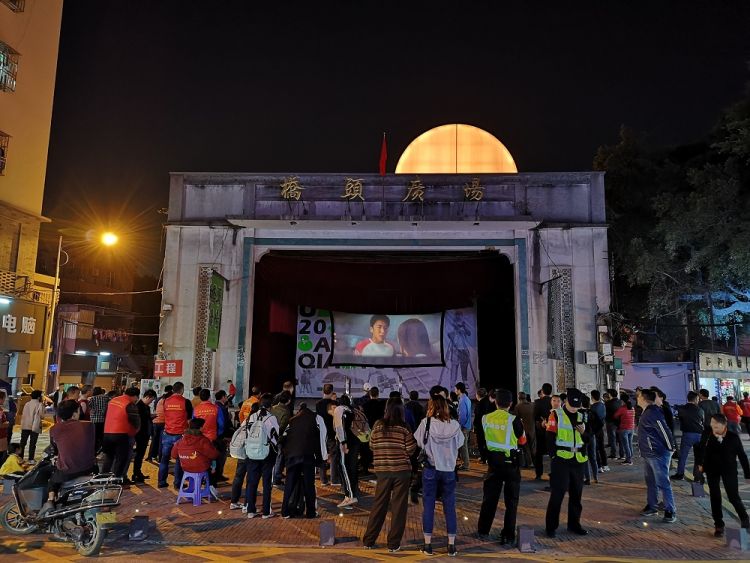 △2019年12月27日,“重回剧场”胶片电影放映活动吸引了桥头社区的居民前来观看。