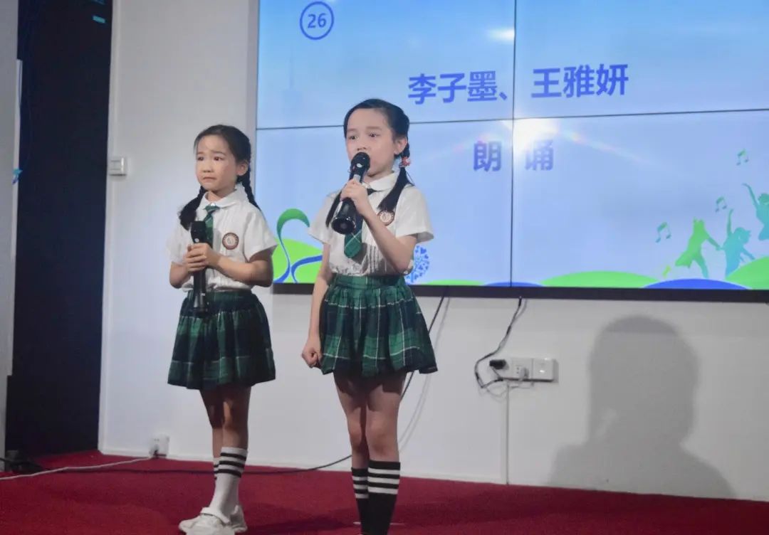 海珠镇泰实验小学学生许芸菲、翁尹莎带来朗诵。