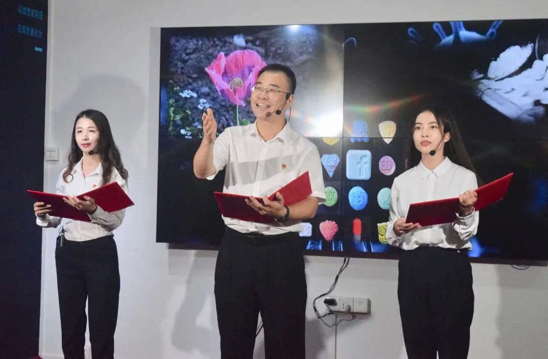 林海健、冼雪莹、李恩三位选手带来朗诵《拒绝毒品,珍爱生命》。