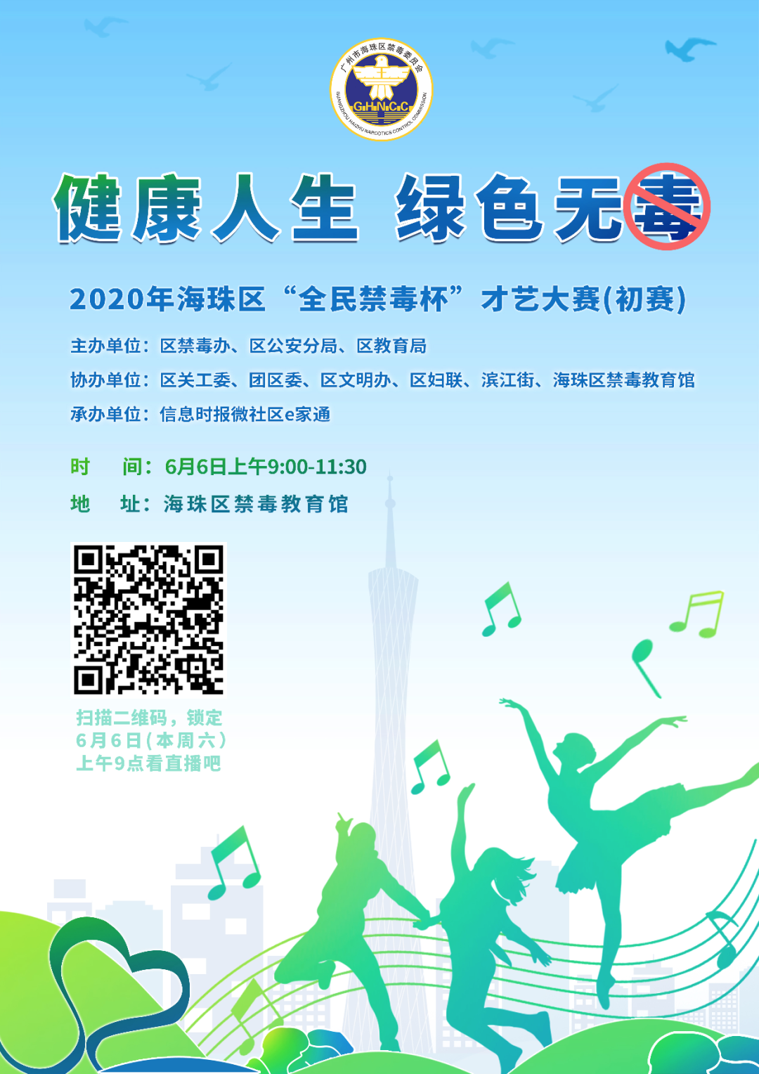 “健康人生 绿色无毒”——2020年海珠区“全民禁毒杯”才艺大赛(初赛 )现场。