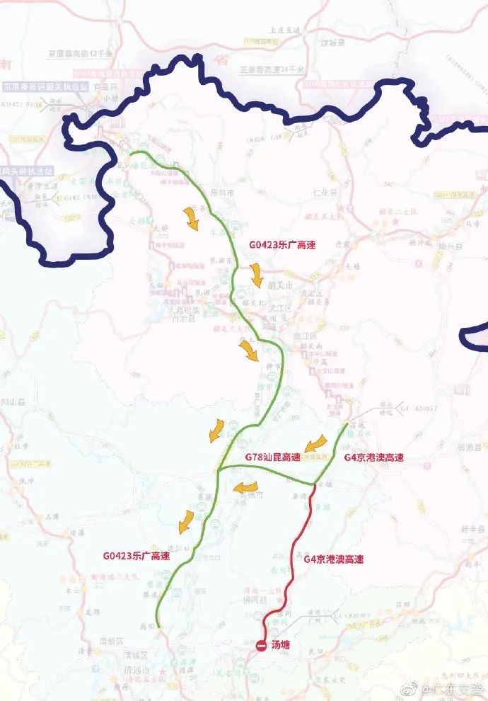 建议南下车辆近端通过G78汕昆高速转G0423乐广高速继续南下;