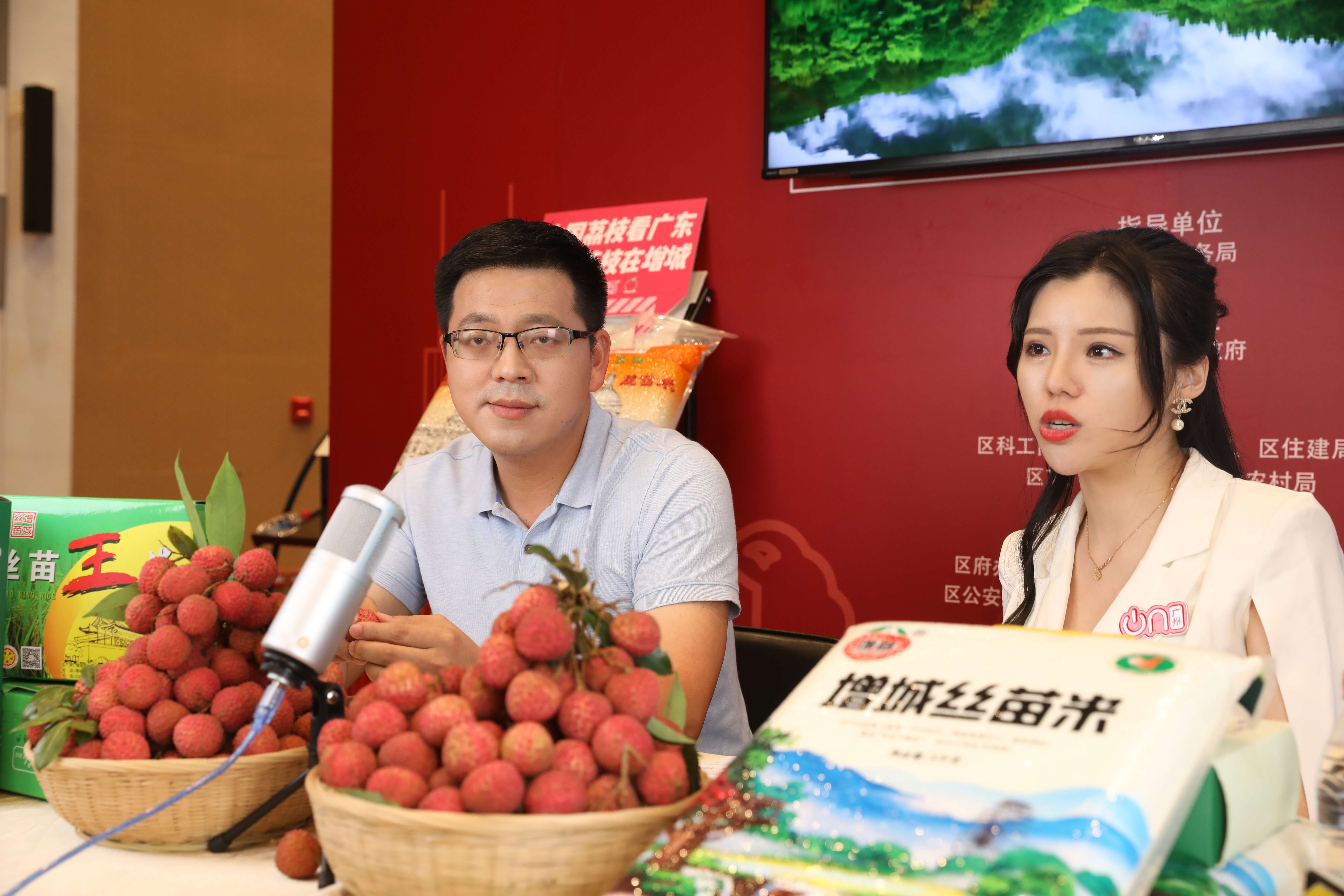 17时30分,王长春走进直播间,为增城荔枝、增城丝苗米等增城特色农产品直播带货,并免费派发荔枝果树采摘权,10个豪华温泉酒店体验名额,以及100张白水寨景区门票。