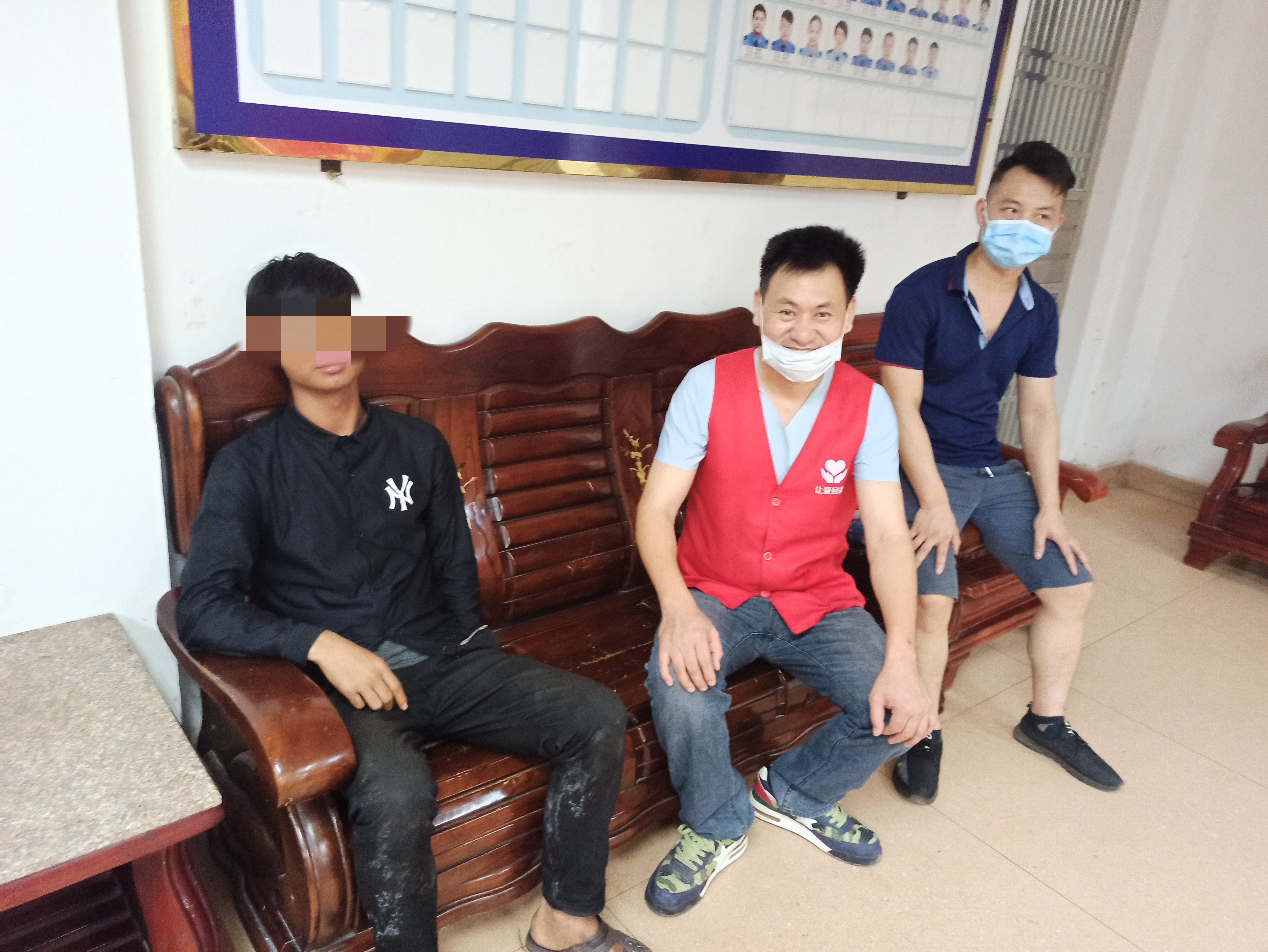 20岁出头的小伙子因为玩游戏玩的精神失常,常常自言自语,一个人发呆,傻笑,别人和他说话,他也只能断断续续回复几句话。失踪两年后,近日,在企石镇“让爱回家”志愿者的帮助下的帮助下,被姐姐接走。临别时,小伙子的姐姐对志愿者们深深鞠躬,表示感谢。