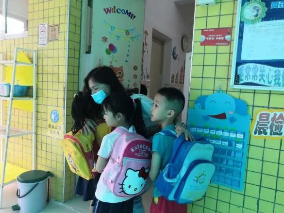 “请小朋友们按地面上的绿色的小脚印站好,不要随便跑动哦。”早上八点在龙穴街幼儿园门口,返园的小朋友们牵着家长的手,有序地排队验证穗康码、进行体温筛查、打卡、洗手、晨检。然后在老师的引导下,挥着小手告别家长,有序地回到了各自班级。