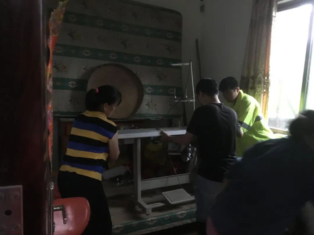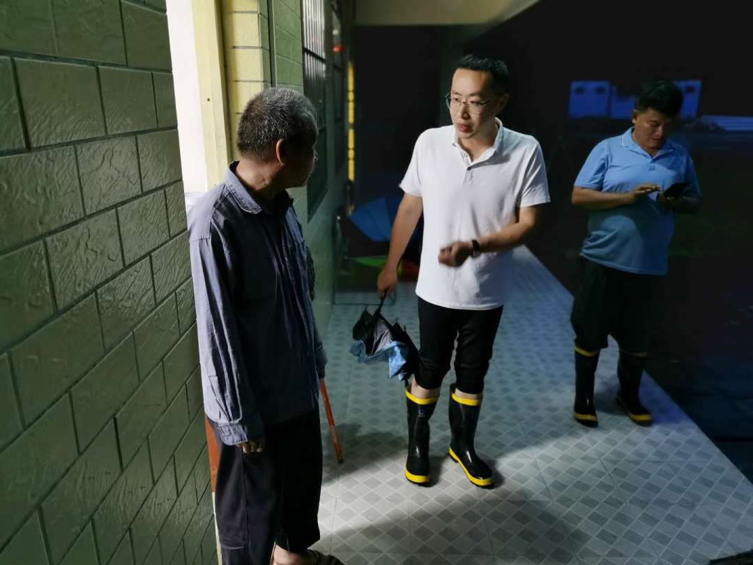 ▲镇领导班子与镇、村(居)干部到地处低洼的群众家中了解情况,协助村民把贵重物件搬至高处,并转移低洼地处的老人、小孩儿到安全地带。