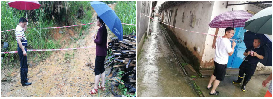 ▲镇(村)干部对山塘、河流、水库、地质灾害点等重点区域进行巡查并拉警戒线。
