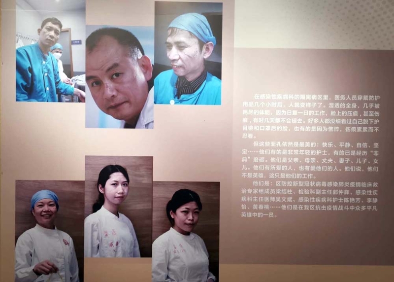 展览分为组织领导、疫病救治、联防联控、复工复产、平凡英雄五个章节部分,通过展出图片173张,实物52件,还有部分影像视频资料,真实记录番禺区社会各界和广大群众抗击新冠肺炎疫情的历史过程,充分展示番禺人民在疫情防控中表现出的番禺力量、番禺奉献和番禺精神。