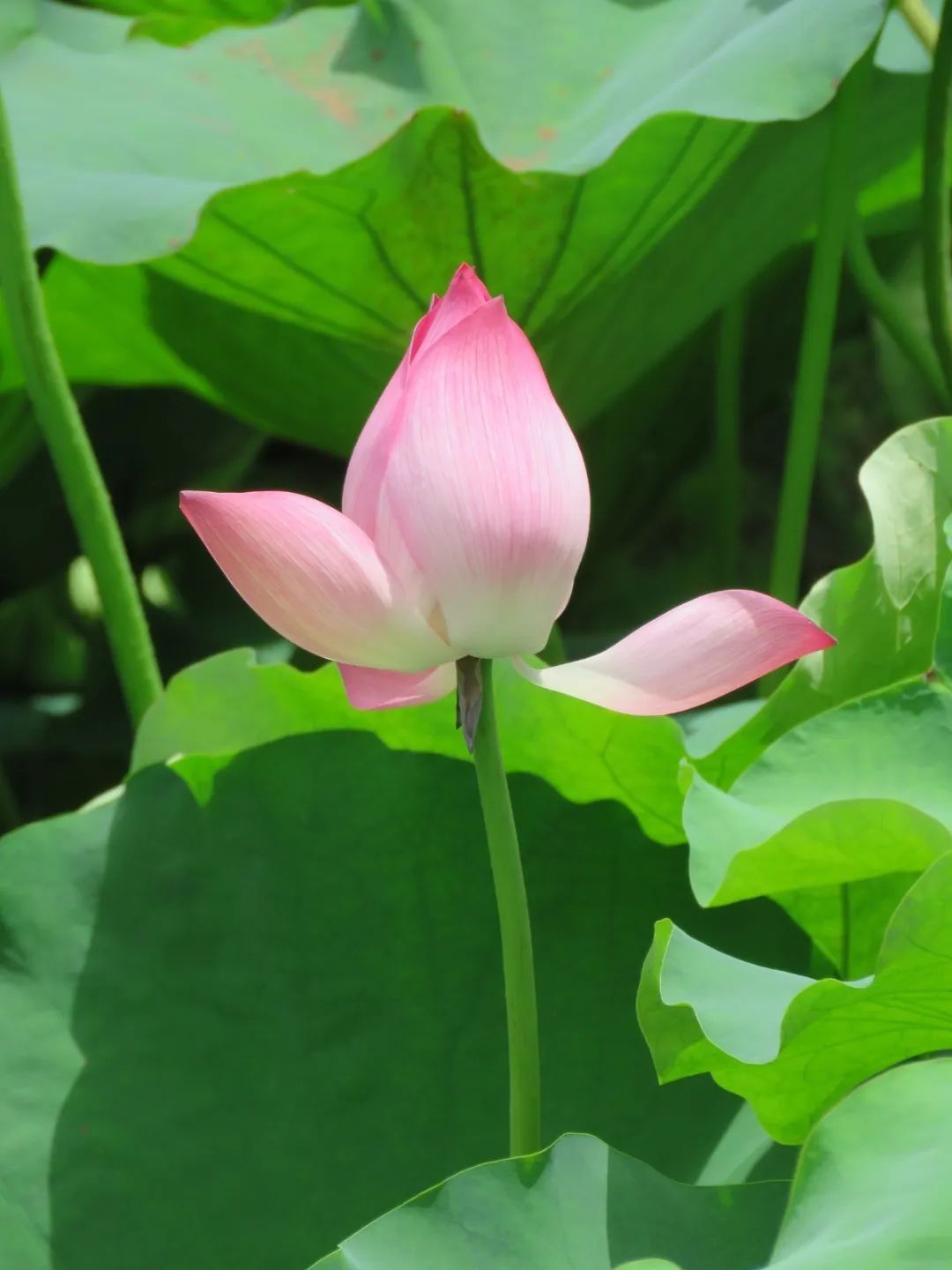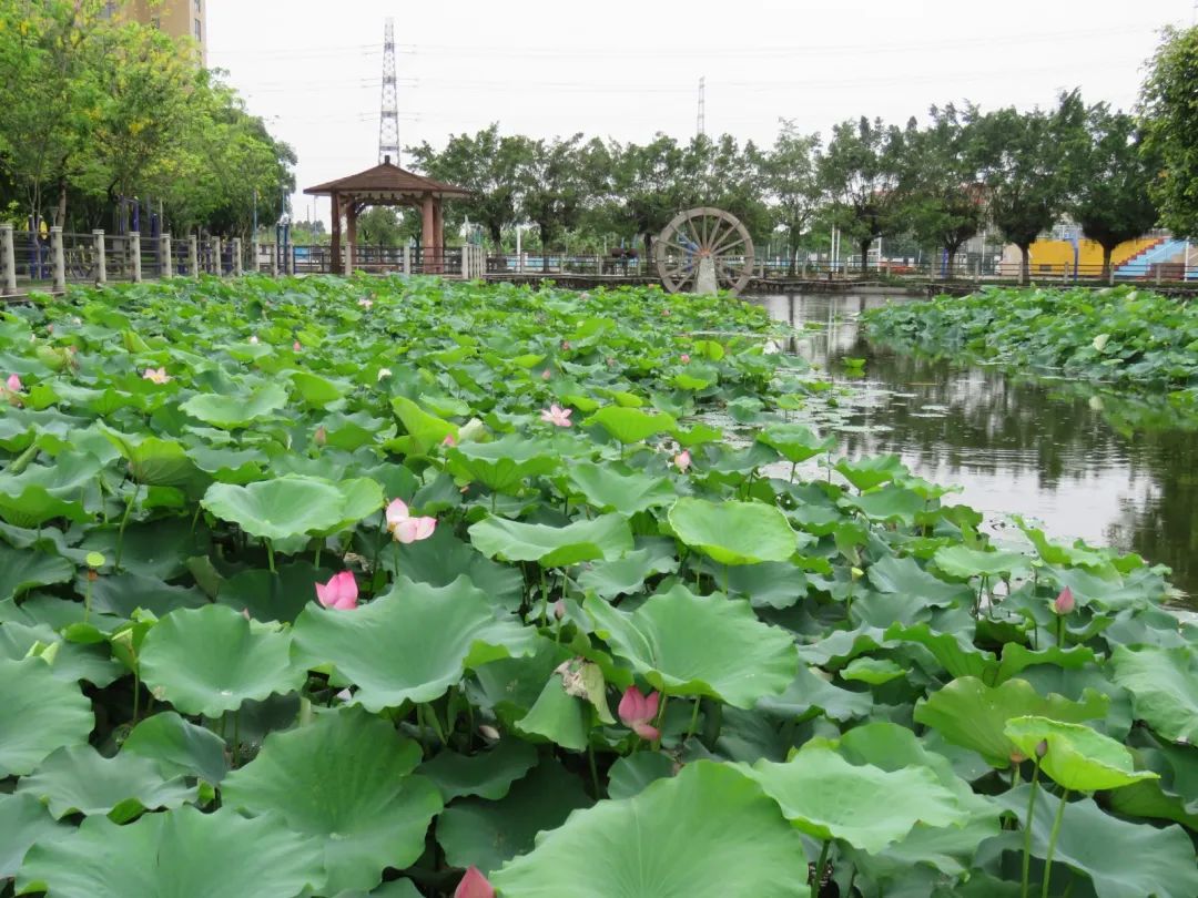 入夏后,一波又一波的龙舟水浇在珠江街道办事处的荷花池里。满池夏色圈不住,一支支荷花梗偷偷地伸出了水面,一片片莲叶悄悄地绿了起来,哇,珠江的荷花开啦!