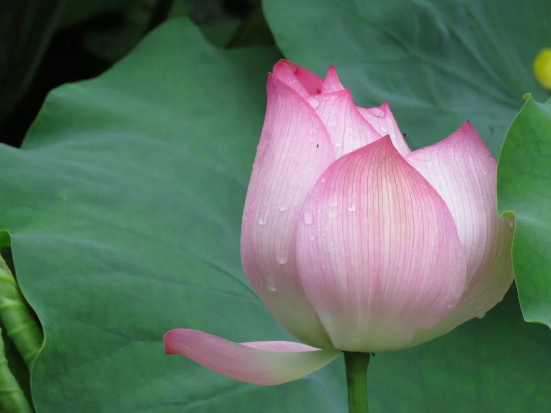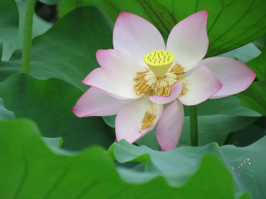 “风蒲猎猎小池塘,过雨荷花满院香”。淅沥沥的雨水,在花瓣上流连、在荷叶上盘旋,伴随一阵清风吹过、恋恋不舍地落入池中,又荡起一圈涟漪~