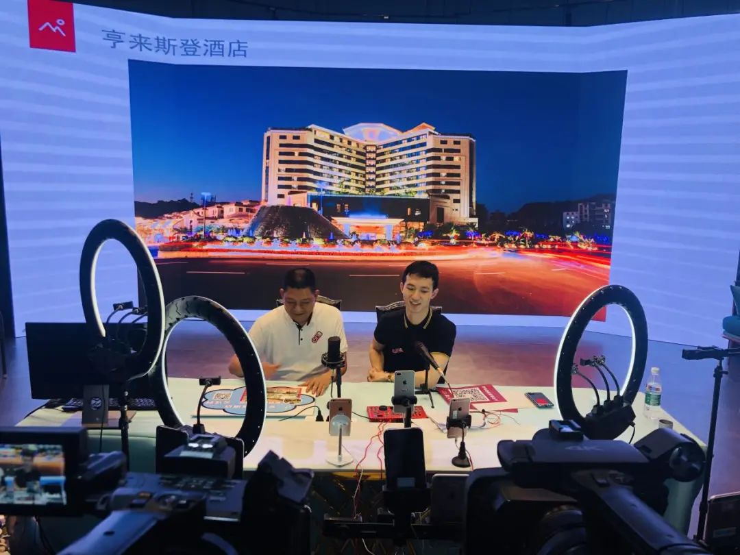 ▲温泉旅游协会会长、长亨集团董事长向网友介绍亨来斯登酒店直播间折扣价。