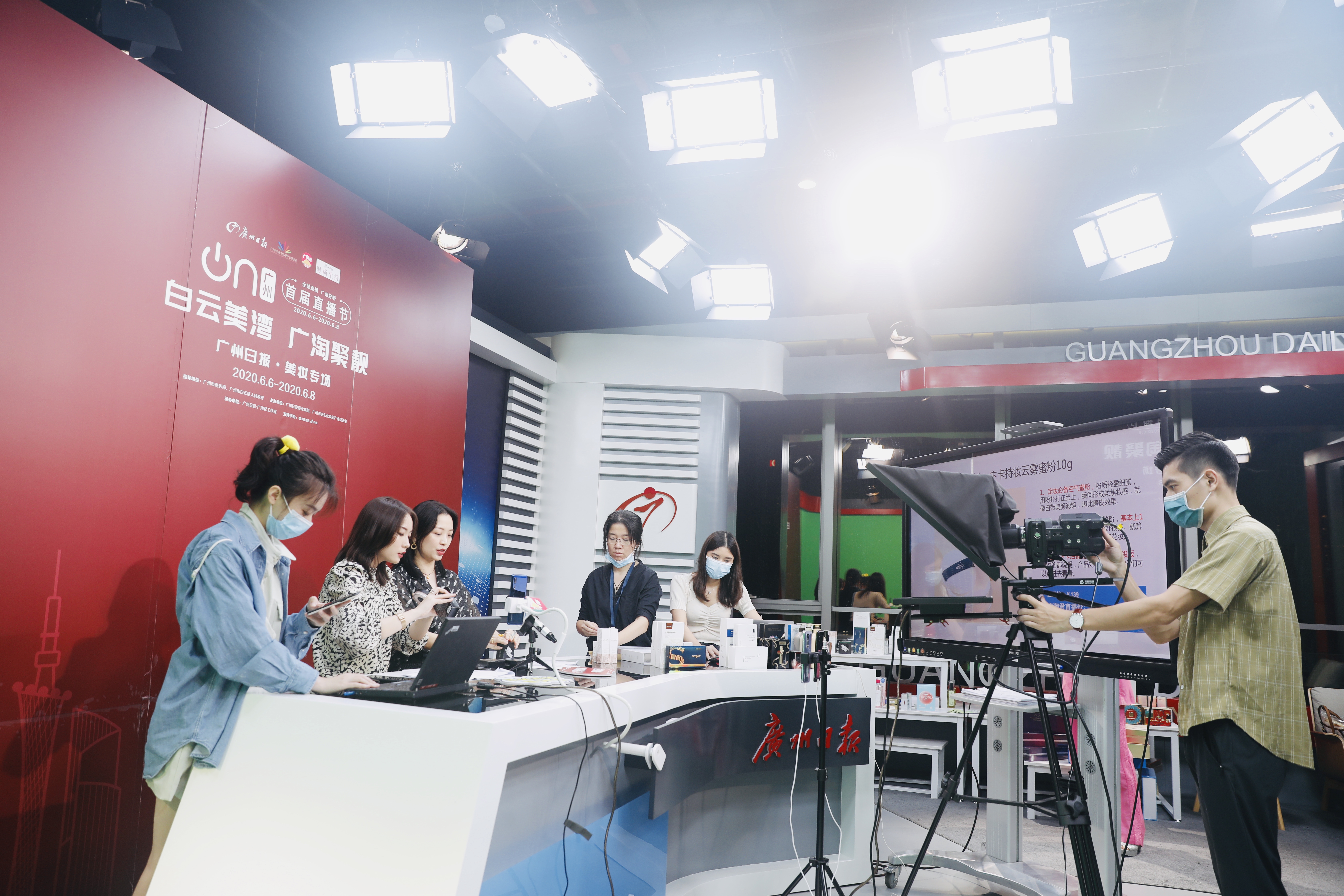 6月6日至8日,作为广州直播节白云分会场之一,“白云美湾·广淘聚靓”美妆专场连续直播三晚。广州日报广淘君直播室也迎来最强主播阵容:广州市白云区副区长张文涛,丹姿集团董事长、广州市白云化妆品产业促进会会长张楚标,白云区鹤龙街“美湾书记”肖秀玲携手白云美妆企业大咖、广州日报广淘君直播主持人、直播MCN机构网红主播,为白云区辖内32个美妆品牌,130多个美妆优品直播带货,携手擦亮“白云美湾”品牌。