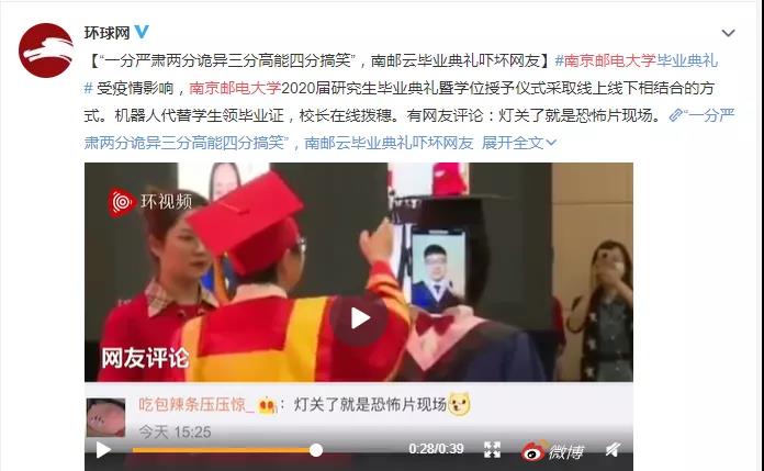 前一段时间,南京邮电大学的“云毕业典礼”登上热搜:利用机器人代替学生领毕业证书,校长给学生在线拨穗。