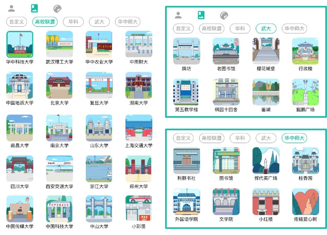 比如华中科技大学。武汉作为此前疫情的重灾区,尽管现在疫情形势好转了不少,但依然有不少学生无法回学校拍毕业照。而华中科技大学党委宣传部旗下学生团队——冰岩作坊互联网团队的同学们就开发了一款主打线上合影功能的微信小程序“森林云相馆”,里面融入了不少艺术加工后的校园场景。师生们可以自行DIY虚拟形象或真人脸部图片来进行“云合照”。