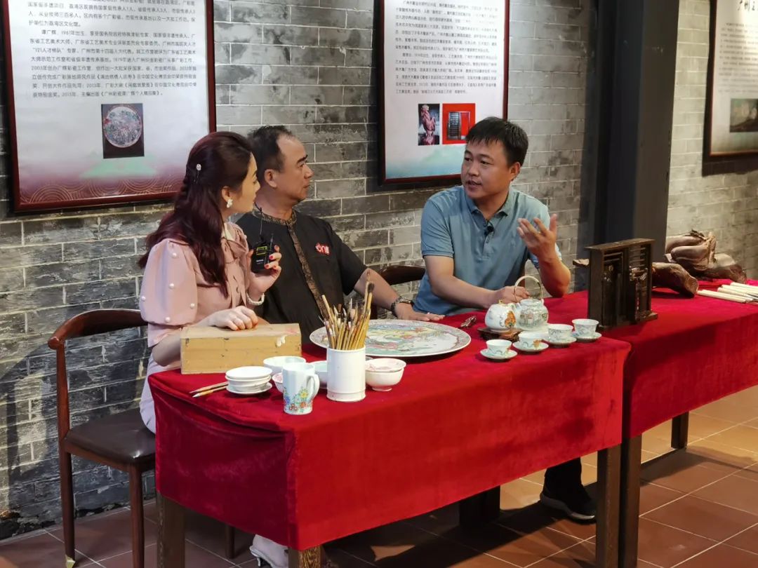 从坐落在恩宁路骑楼街的永庆坊开始,安建国和京东物流华南带货网红莫澳欣一同探访“三雕一彩一绣”展馆,与国家级非物质文化遗产代表性传承人、广彩传承人谭广辉,非遗传承人、木雕传承人唐锦全一起绘广彩、赏木雕。素有“岭南之门”美誉的西关趟栊门木雕勾起了观众的西关回忆,大师们的工匠精神透过精巧的作品和生动的讲解跃于屏前。