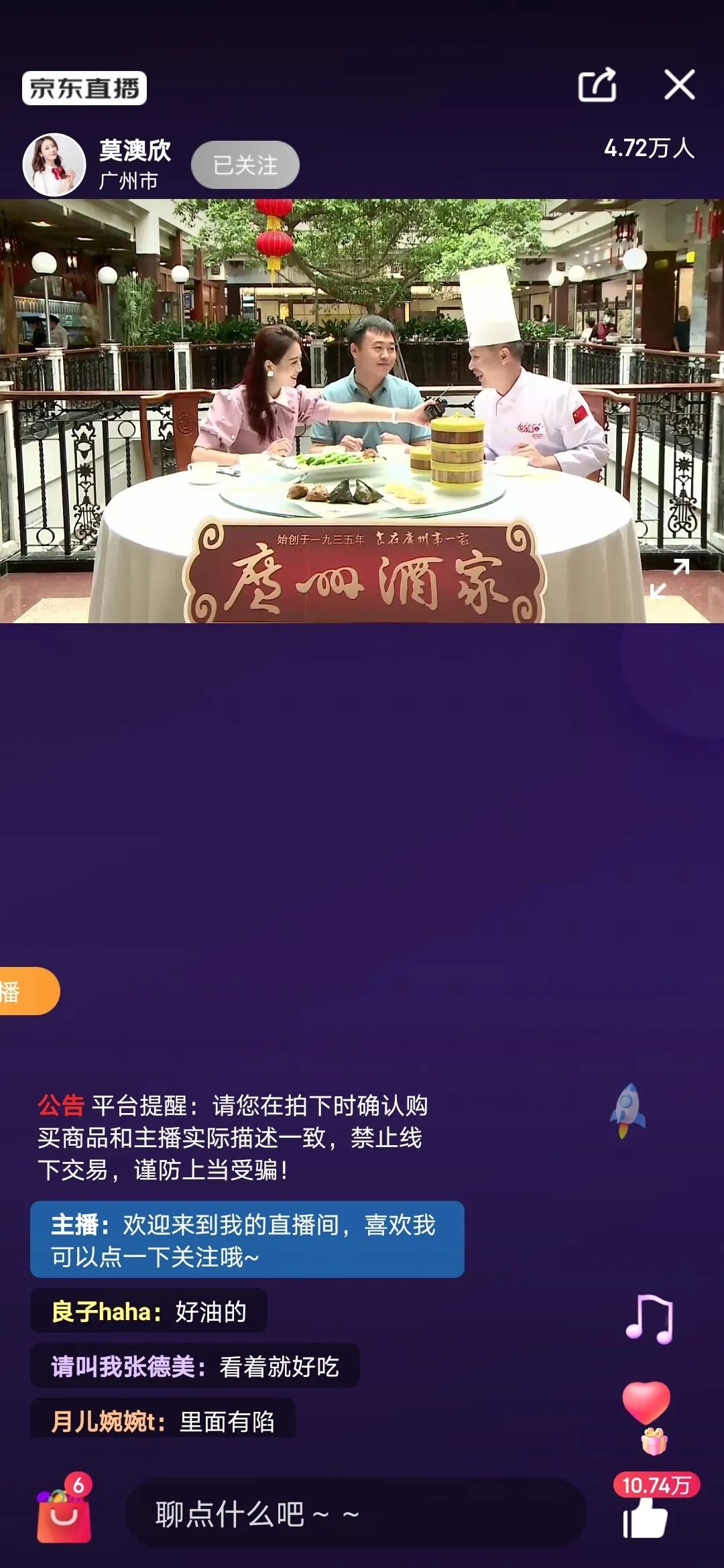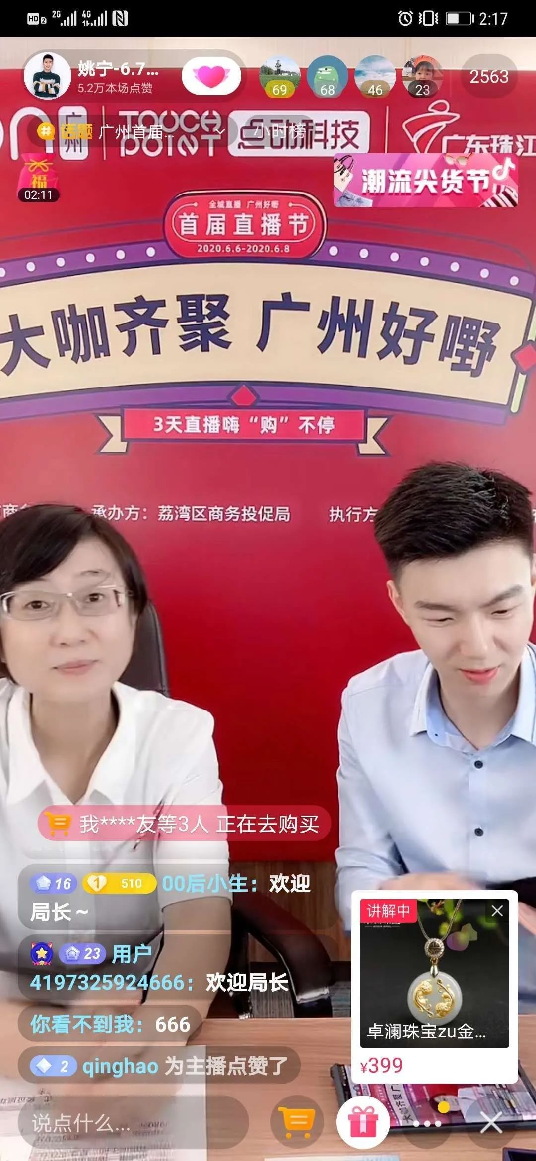 荔湾区副区长安建国走进京东直播间讲述西关风情,探访网红打卡点“永庆坊”和华辉拉肠、广州酒家、妇儿百货、第一福等老字号企业,寻味西关美食,鉴赏广彩、广绣、木雕等岭南传统工艺品。直播间吸引了11.26万人同屏“云游”西关。