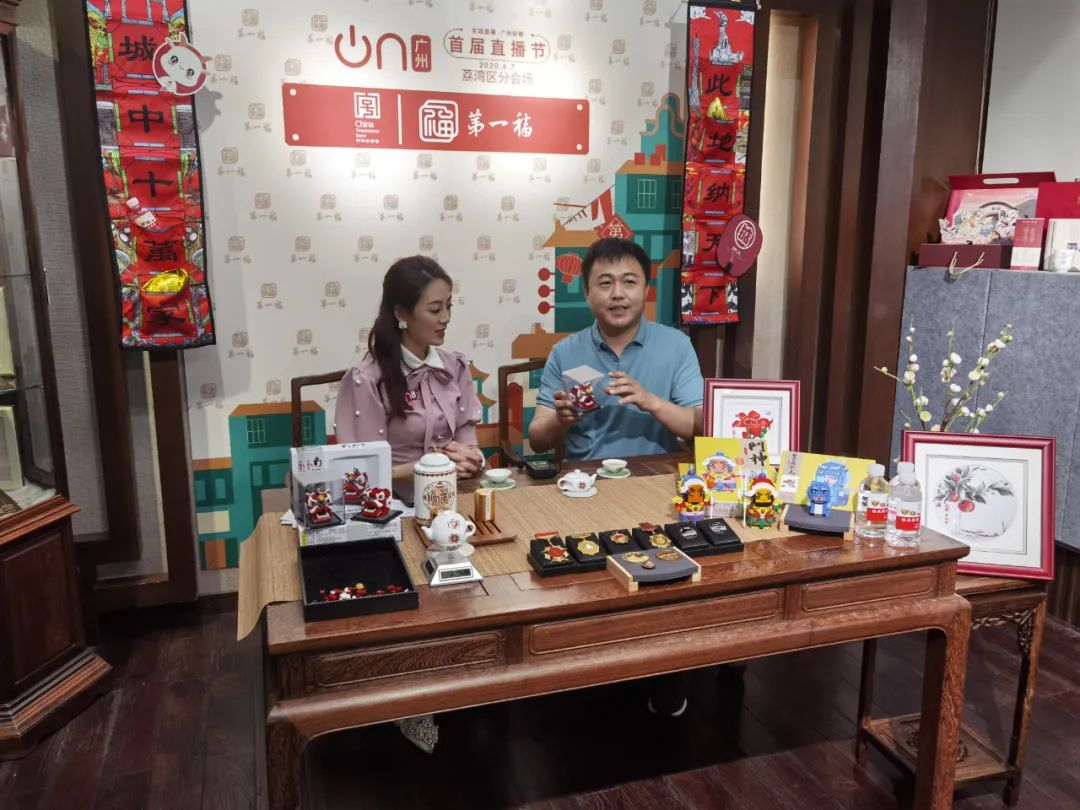 最后一站来到“工艺+文创”的中华老字号“第一福”,第一福通过发展文创产品,赋予西关千年文化新魅力。有居家旅游必备的“福禄寿”茶杯茶壶三件套,有寓教于乐功能的南狮狮头积木,以及岭南文化特色的扇子和冰箱贴等等创意产品。安建国表示:“第一福做出了‘懂得跟年轻人对话的产品’”。据了解,京东第一福旗舰店是广州直播节期间新上线的店铺,通过直播的曝光,总浏览量增长3倍多,期间线上线下成交量超万元。