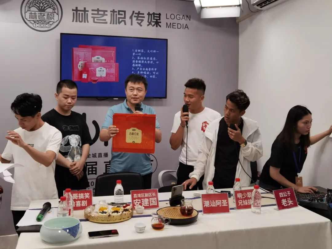 6月7日晚上20时,安建国与拥有数百万粉丝的抖音网红大咖四公子老头、明少翠花兄妹搞笑等,齐聚在芳村茶叶市场茶叶慈善专场直播间。茶叶慈善专场,以“茶叶”为元素,展示具有鲜明中国特色的传统文化。通过提供平台为品牌商展示实力,带动整个荔湾区的茶产业电商直播升级,打造一场感受茶之魅力、释放消费热情的直播,让特色茶品走进千家万户。
