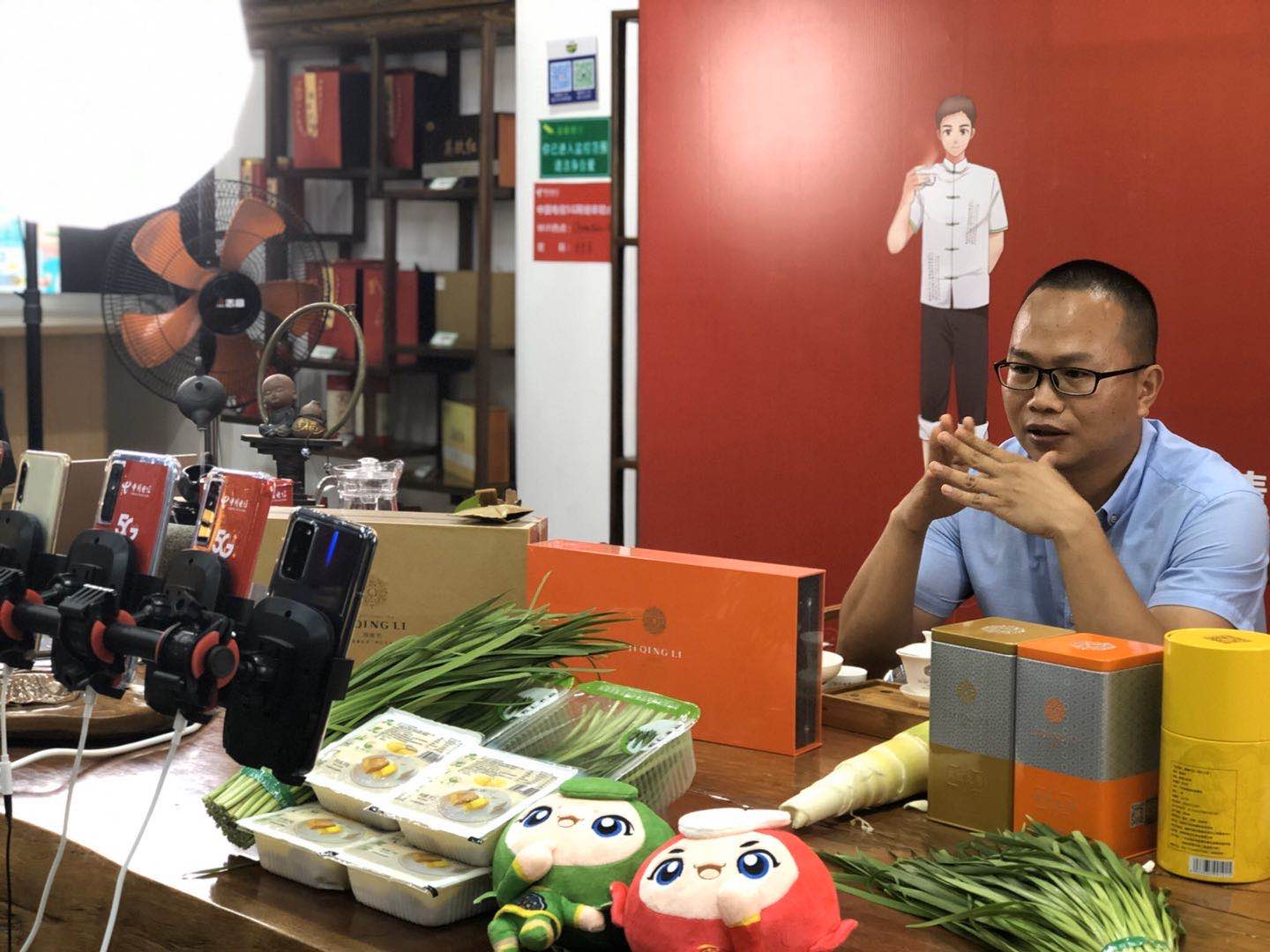 “我相信很多有观看小视频习惯的人,在口淡的时候,会想要随时来一点即食品”、“大家一定要试试英德红茶,我们这里是著名的红茶之乡!”今天下午,在英德市电子商务产业园内,“冬瓜叔叔”、乡村新闻官肖立鑫正对着五部手机奋力直播。之所以称他“冬瓜叔叔”,是因为在疫情期间,他靠着直播、拍短视频等手段,帮当地长岭村村民卖掉400万斤滞销的冬瓜。