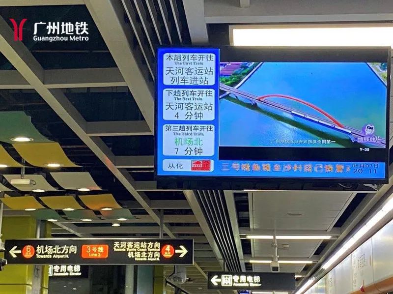 现在三号线站台地铁电视上显示的列车终点站信息,字体颜色不再是千篇一律的“黑色”,而是用“绿色”和“黑色”两种字体来区分,通过字体颜色可以很快判断列车的终点站信息,是不是方便了很多?详情>>>