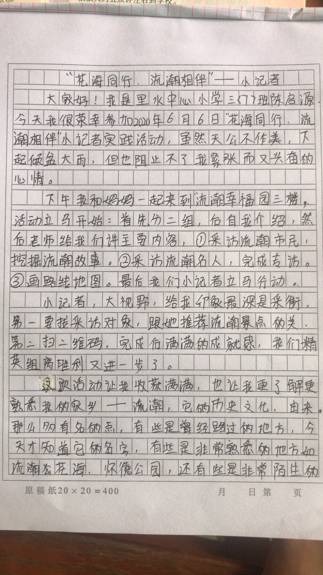 活动结束之后,小记者们还回家撰写文章,向游客推荐自己队伍设计的旅游路线,希望未来有越来越多的人可以来流潮玩,领略流潮的文化,品尝流潮的美食。