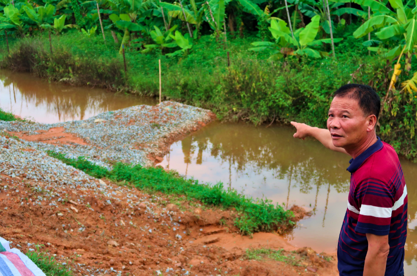 6月10日,徐秋文指着已经封堵好的管涌告诉小e,这是他发现的第一处管涌,也是当天情况最严重的管涌