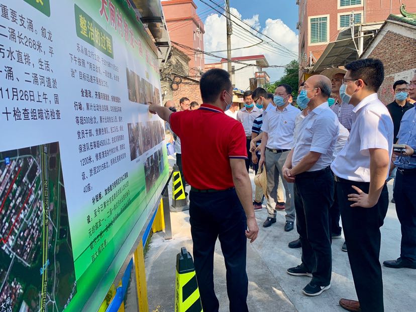 今天,生态环境部华南督察局督察专员白保柱带队对佛山市开展中央督察整改工作调研督察。督察组一行对桂畔海水系综合整治工程、仙塘宝涌工业区(一期)改造、大闸村农村黑臭河涌整治等项目进行调研督察。其中,大闸村叙龙一涌、叙龙二涌经过大力整治,河涌水质、河岸环境和全村卫生面貌得到显著提升。白保柱表示,佛山要以农村环境改善为契机,提升农村人居环境品质,将具有佛山特色的“美食、美品、美景”打造成佛山名片。