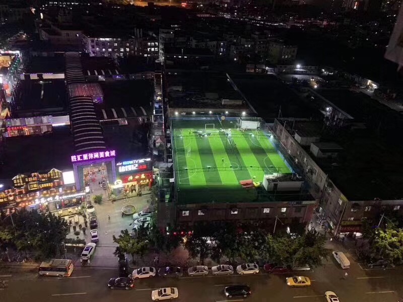 其实世界上不少人口密度大的城市,都有利用一些大楼楼顶的天台改建为社区球场的例子。广州和国内其他城市,之前也有一些人在这样做。陈亦明也实地考察过不少“天台球场”,但感觉规模和运营模式都不是很理想。这让他萌生了自己要在这方面进行突破尝试的想法。