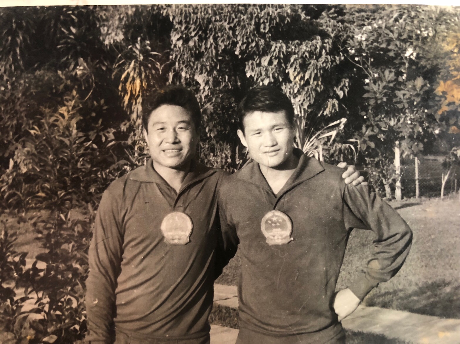 陈亦明(右)在八一队时代与队长曹凯军在一起