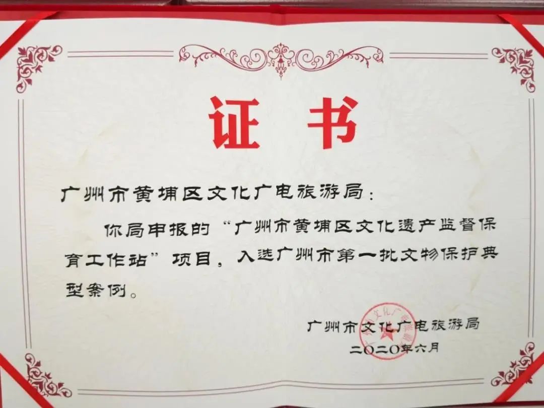 黄埔区由政府主导,引入专业社会力量,于2014年创建了“黄埔区文化遗产监督保育员工作站”。2017年、2018年分别荣获“广东省文化遗产保护突出贡献团体称号”、全国第十届“薪火相传文化遗产筑梦者杰出团队”等称号。在实现政府部分行政职能下放,为基层政府机构减负的同时,提高了工作效率,为一线文物巡查保护工作及基层治理模式提供了有益经验。