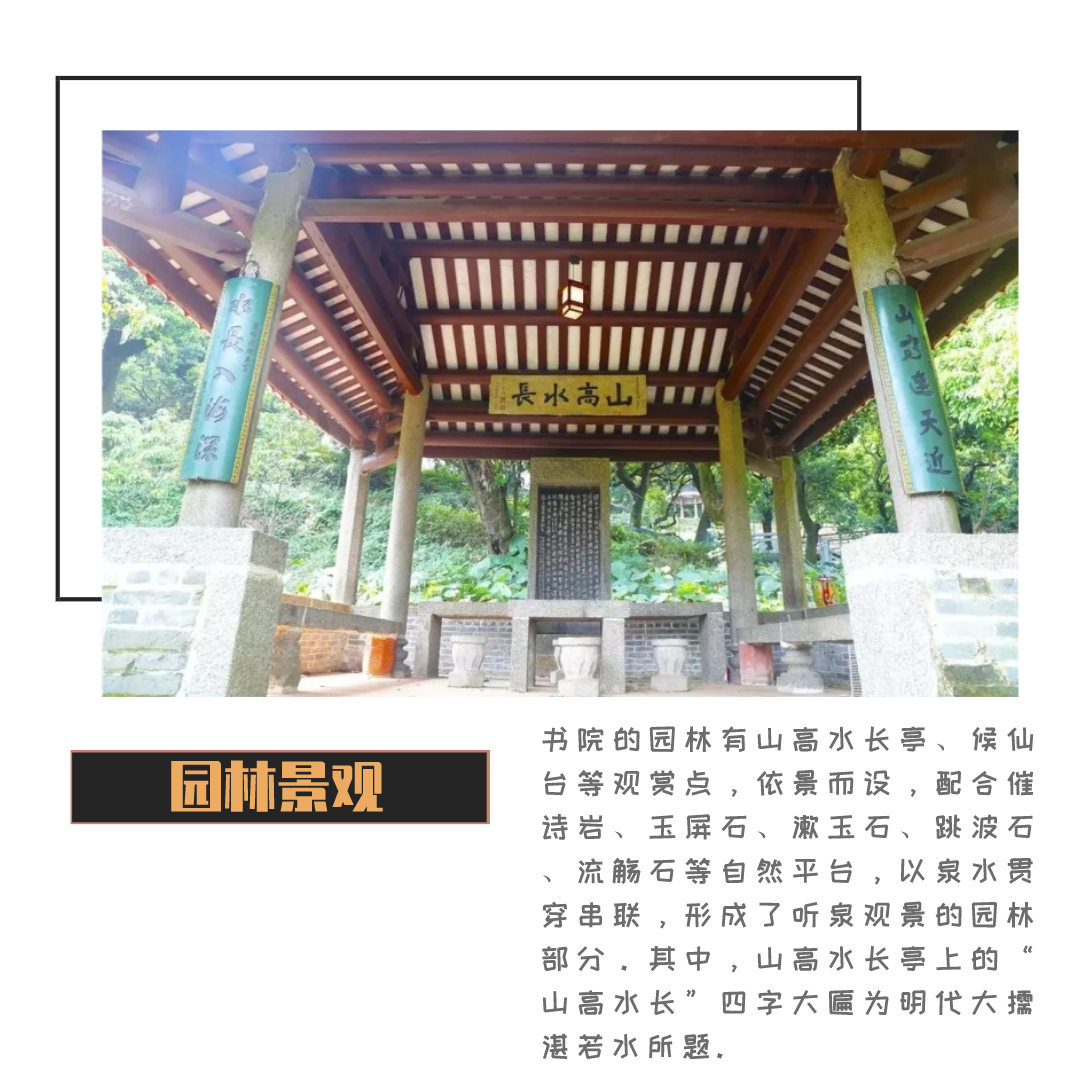 玉喦书院融“儒、释、道”于一体,集书院、祠堂、寺庙、园林于一身,修缮后的玉嵒书院保存有余庆楼、玉喦堂、种德庵、天尊堂、观音殿、山高水长亭、文昌庙等名胜古迹。