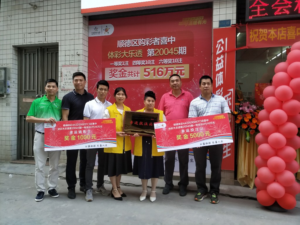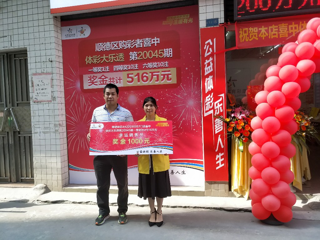 体彩大乐透516万元大奖“花落”顺德幸运儿!6月12日下午,顺德体彩举行大乐透颁奖仪式。幸运销售员和幸运投注站也分别获得1000元和5000元奖金。