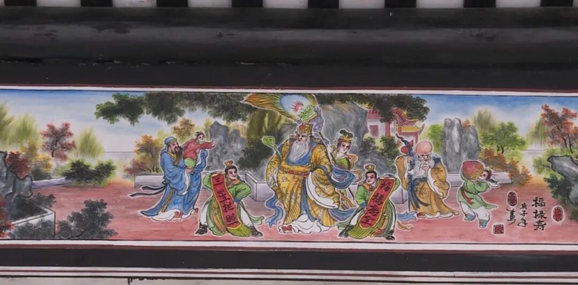 耀斗胡公祠旧貌进入障岗村,第一眼看到的就是这座显赫的宗祠,走进宗祠,工人们正在重绘祠堂屋檐梁台上的戏剧人物和各种吉祥纹饰,原先破败的屋顶和房梁已被一一翻修,焕发新颜。