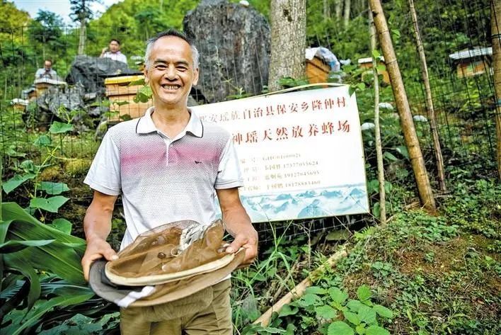 △都安县隆仲村蜂农韦国胜和他的“致富蜜”。(摄影:刘安邦)