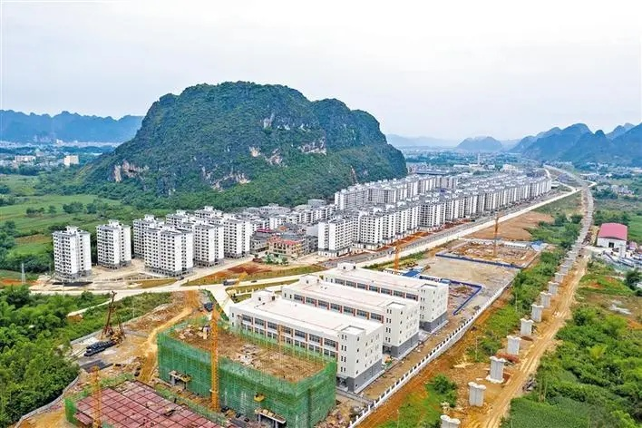 △如今,都安的居民住上了一排排崭新的安置房。(摄影:刘安邦)