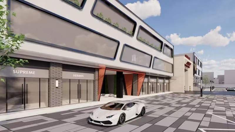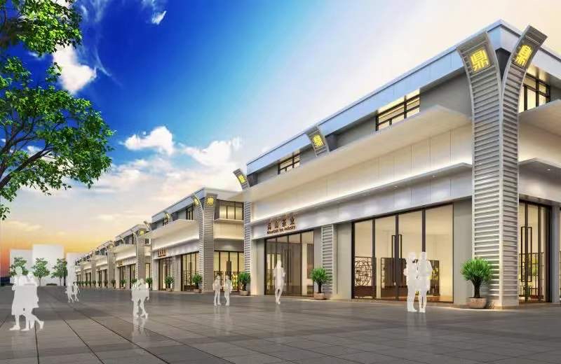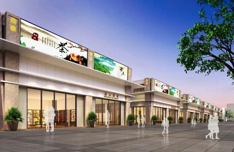 此次鼎泰茶叶城改造提升项目包括外立面升级整饰及园区内部环境综合整治。其中外立面升级整饰包括统一规划的飘蓬设计、采用石材和金属等元素打造时尚的外立面以及新设计保安亭。内部综合环境整治包括人车分流、增加绿化以及与茶文化有关的雕塑、建设生态停车场等。