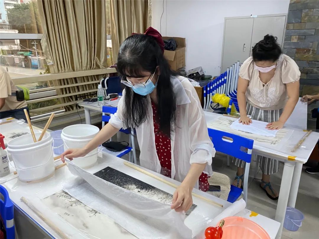 6月13日“文化和自然遗产日”当天,书画装裱修复技艺系列宣传体验活动之揭裱体验在越秀区文化艺术中心二楼教室举办,10余名街坊在越秀区第五批区级非遗代表性项目广式古书画修复技艺代表性传承人尹纪召的带领下,学习体验揭裱技艺。