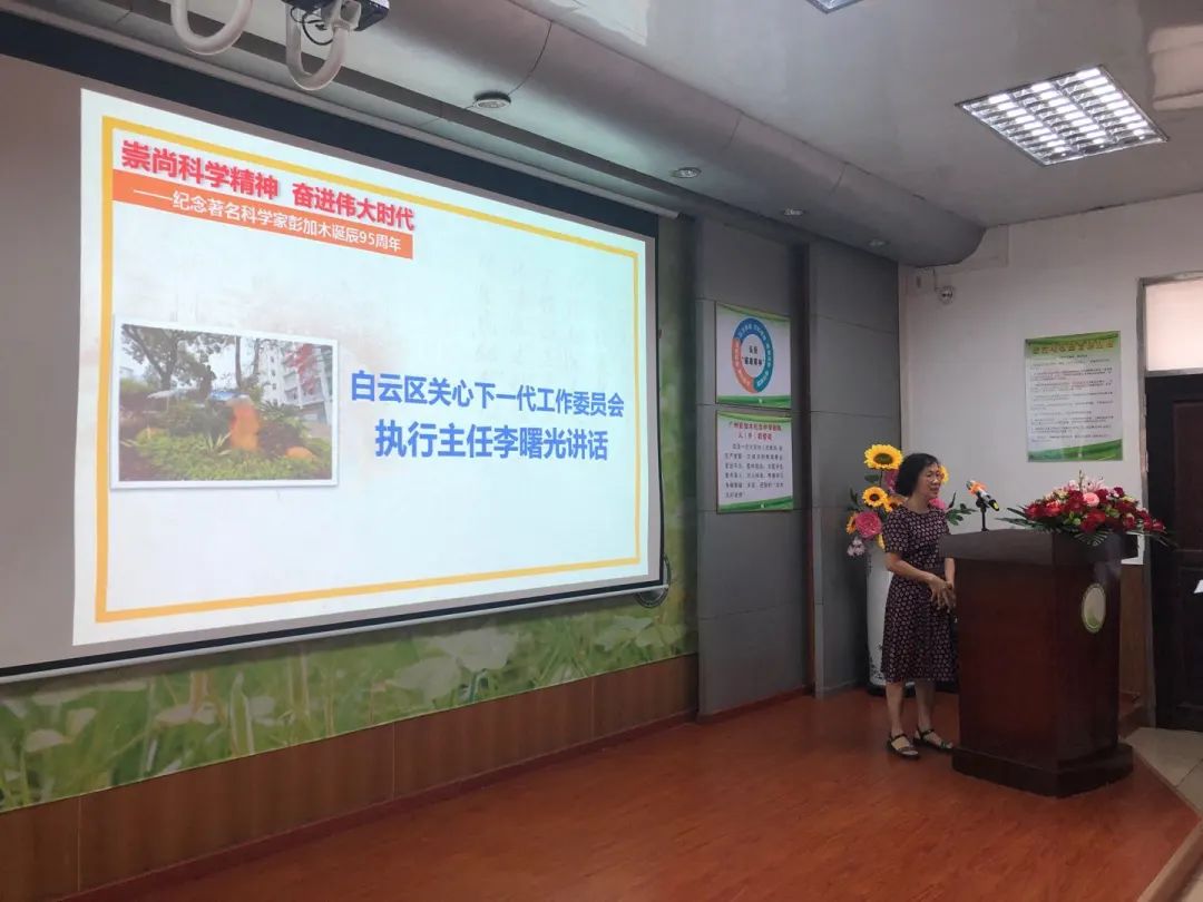 广州彭加木纪念中学校长张瑞凯为主题活动致词,纪念中学学生代表高一(1)班陈小璐在发言中表示,要继承和发扬彭加木的伟大精神,热爱科学、努力学习。
