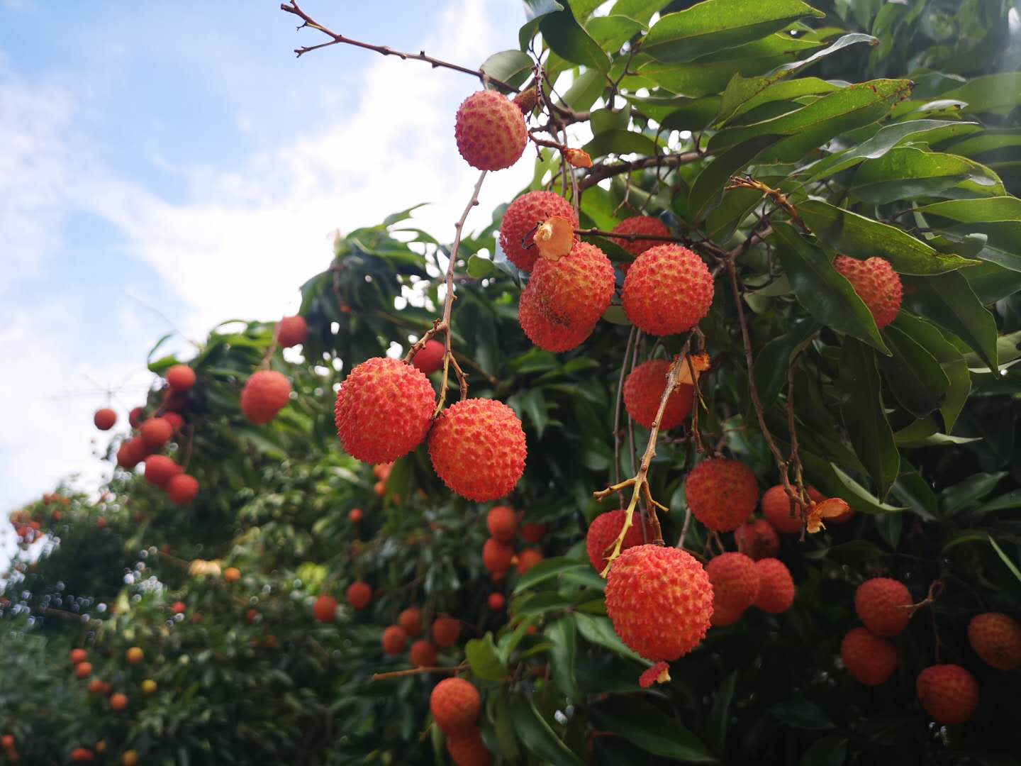 「呢個星期開始荔枝樹上嘅果陸續紅嘞,預計下周開始來摘最好。」廣州日報記者喺南沙區黃閣鎮嘅采荔人家果園見到,果園裡嘅部分荔枝樹已經掛著紅色嘅果實,果農介紹,預計下周開始荔枝樹上嘅果子會大面積成熟,對於想摘果遊嘅遊客來講,黃閣麒麟荔枝採摘游計劃可以安排起來啦。