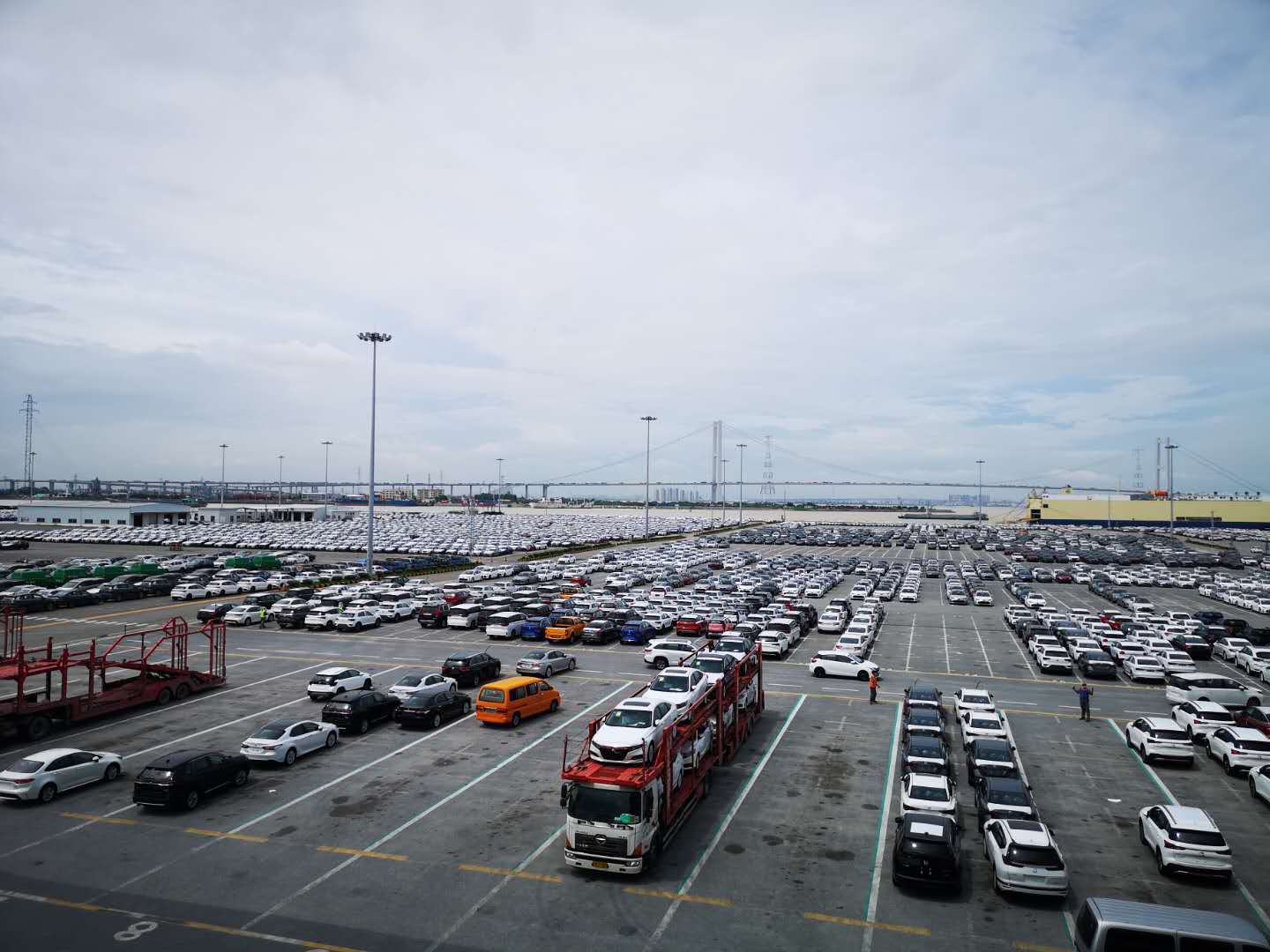 汽車物流碼頭上停泊着許多汽車