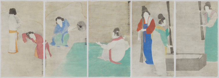 《仿宋摹张萱捣练图》 纸本设色 沈勤