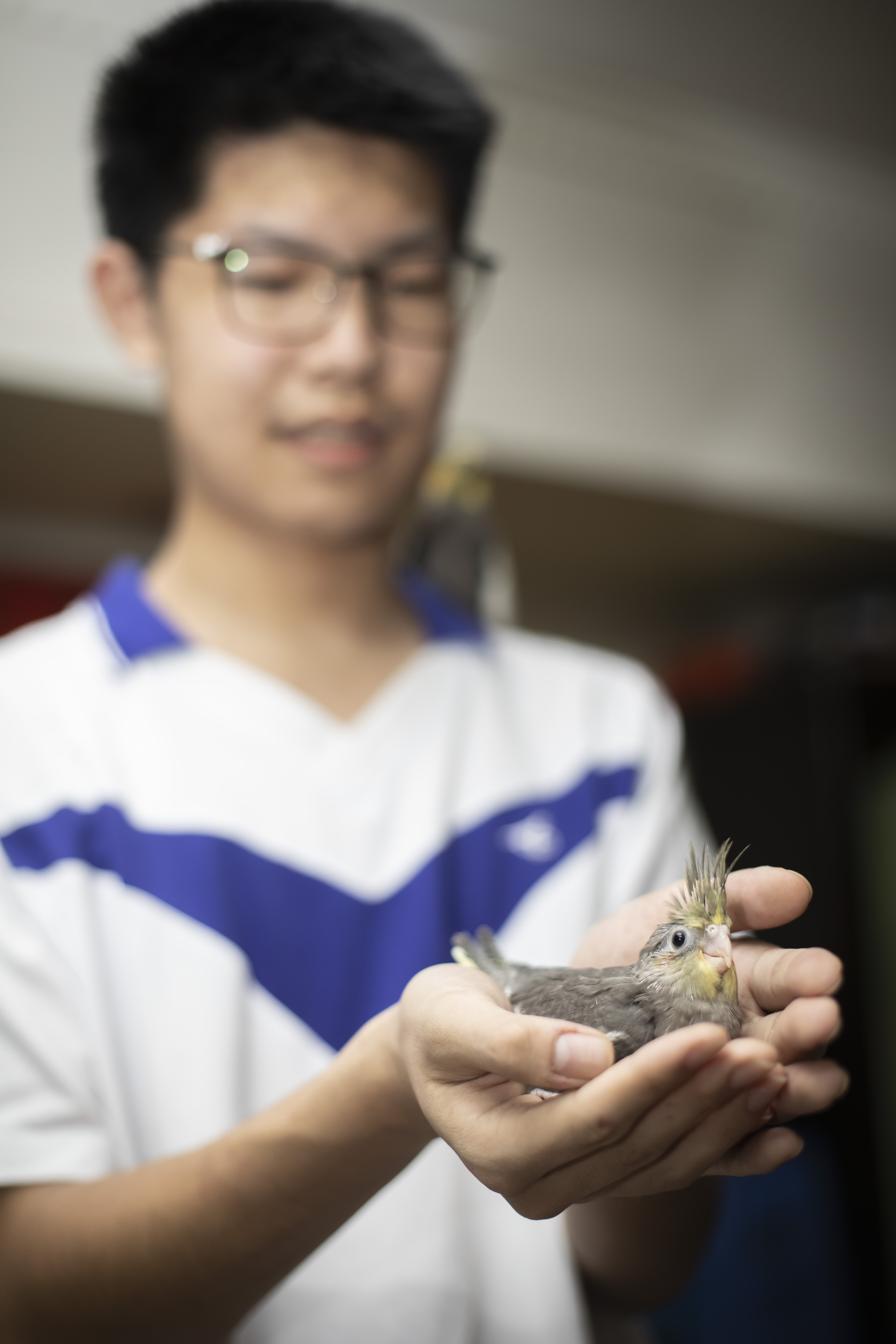 “整个孵化的过程不到一个月,小鹦鹉就孵出来了,这特别神奇,我感觉自己看到了动物的一生,对我来说也有很多启发,这些小鹦鹉刚长毛时,我给它们换了一次笼子,还帮他们把整个窝都清理了一遍。”
