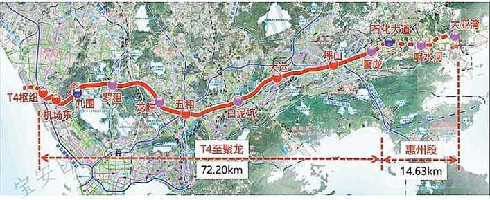建成开通后,将衔接起石岩、龙华南、坂田、坪山中心等众多城市功能区,完善宝安国际机场客运集散体系,提升机场集疏运服务水平。