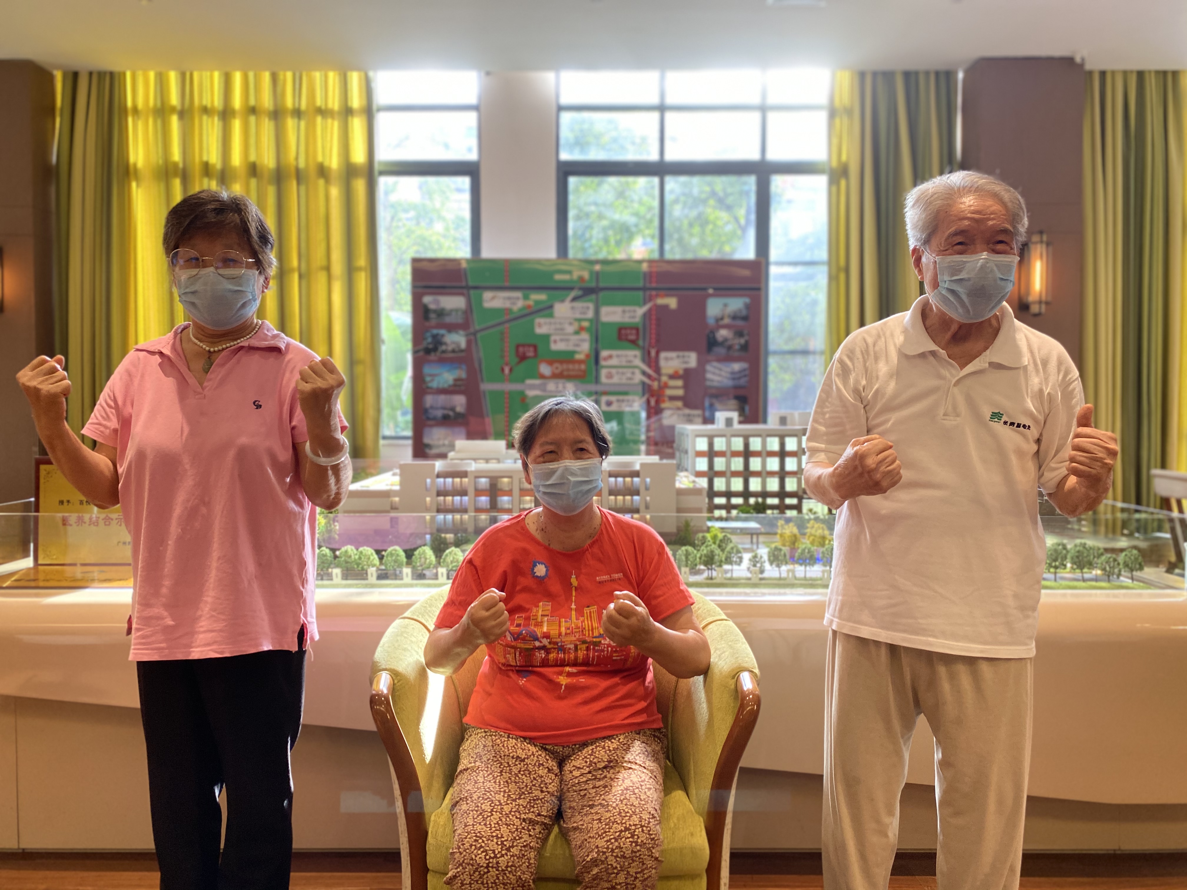 三位长者表示,在颐养中心安享晚年的他们十分关注全国抗疫情况,由衷地钦佩奋斗在各岗位的抗疫人员。所以当社工们提议做这个表演的时候都非常高兴,希望能表达自己的心情。在社工们的带领下,经过了15个课时的学习,50位长者不但熟悉了歌曲,还掌握了整首歌曲的手势表达。
