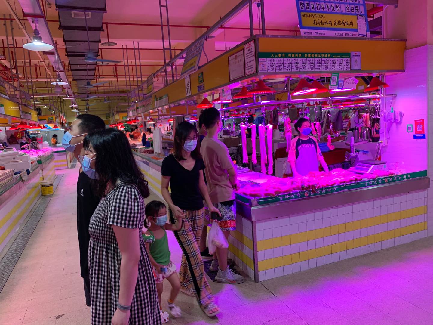 广州市肉菜市场行业协会执行会长梁丽娥告诉记者,目前肉菜市场依然是封闭式管理,坚持进出市场戴口罩、量体温等各项防控措施;每天加强消毒和检验检测,对蔬菜、肉类、海鲜进行每日抽检,并且将数据实时更新上传。