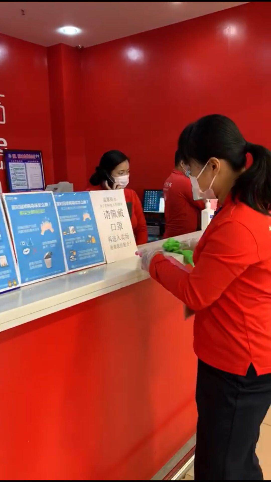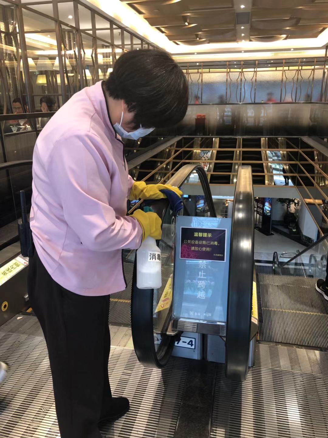 逛商场期间,记者发现保洁人员高频次地擦拭和清洗收银台、服务台、电梯按钮、公共桌椅、门把手、扶手梯等最容易与顾客发生接触的区域或点,全面消杀工作做的很到位。