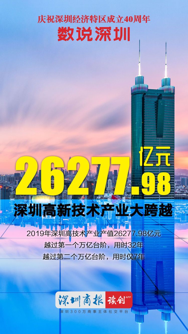 据统计,深圳高新技术产业产值从1979年零起步到2010年突破1万亿元大关,用了32年。严格意义上讲,深圳的高新技术产业是从上世纪90年代初起步的,并被确立为深圳重点发展的四大支柱产业之一。1991年全市高新技术产品产值仅22.9亿元,1998年已达到655.18亿元。占工业总产值的比重由8.1%提高到35.44%。高新技术产品的出口也高速增长,1992年深圳高新技术产品出口额仅有1.92亿美元,1998年已达44.31亿美元。